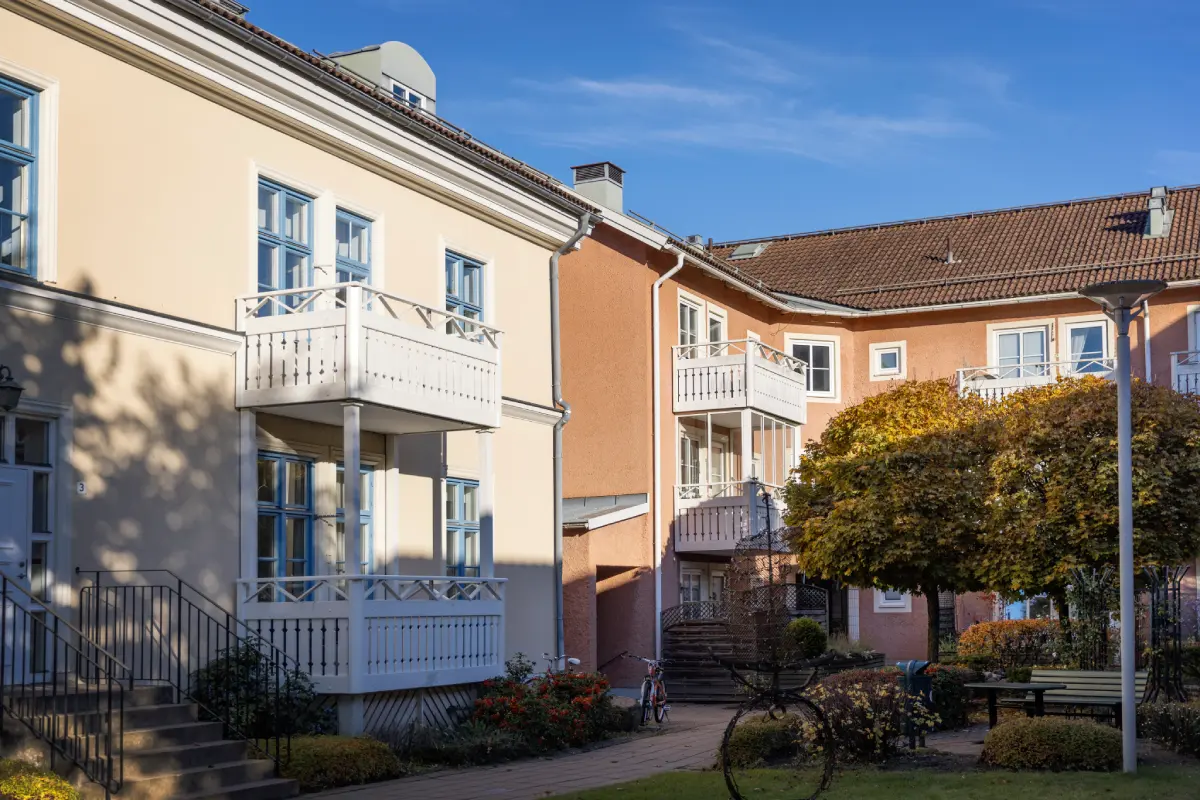 Fastigheten ligger i en lugn del av Skövde centrum, runt en avskild, grön innergård. Här är nästan svårt att tro att stadens livligaste stråk med restauranger, handel och Resecentrum ligger alldeles runt knuten.